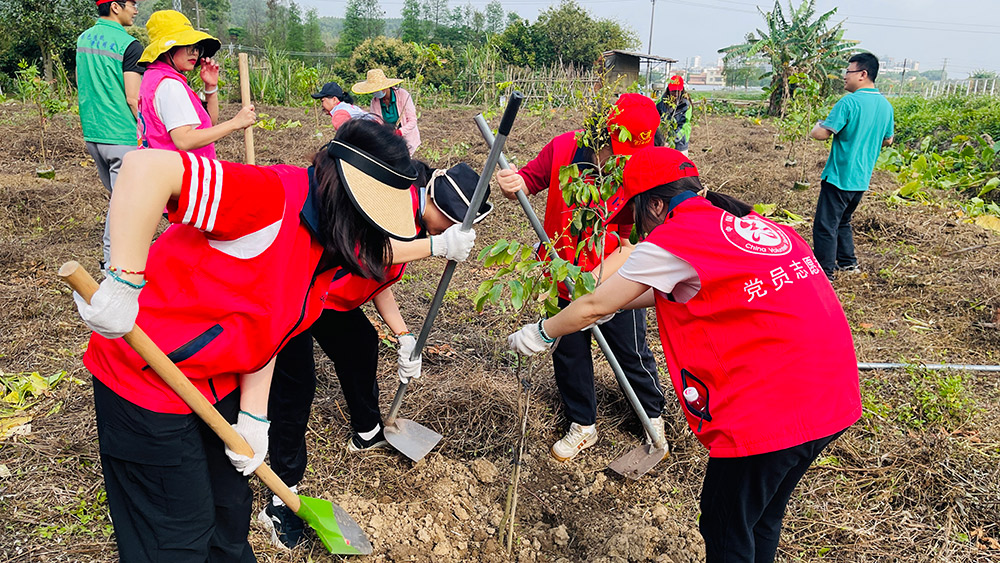 活動(dòng)現(xiàn)場(chǎng),職工們熱情高漲、配合默契,有序完成揮鋤挖坑、扶苗培土、踩實(shí)澆水等工序。經(jīng)過共同努力,120株龍眼樹苗扎根沃土,為大地增添盎然生機(jī)。